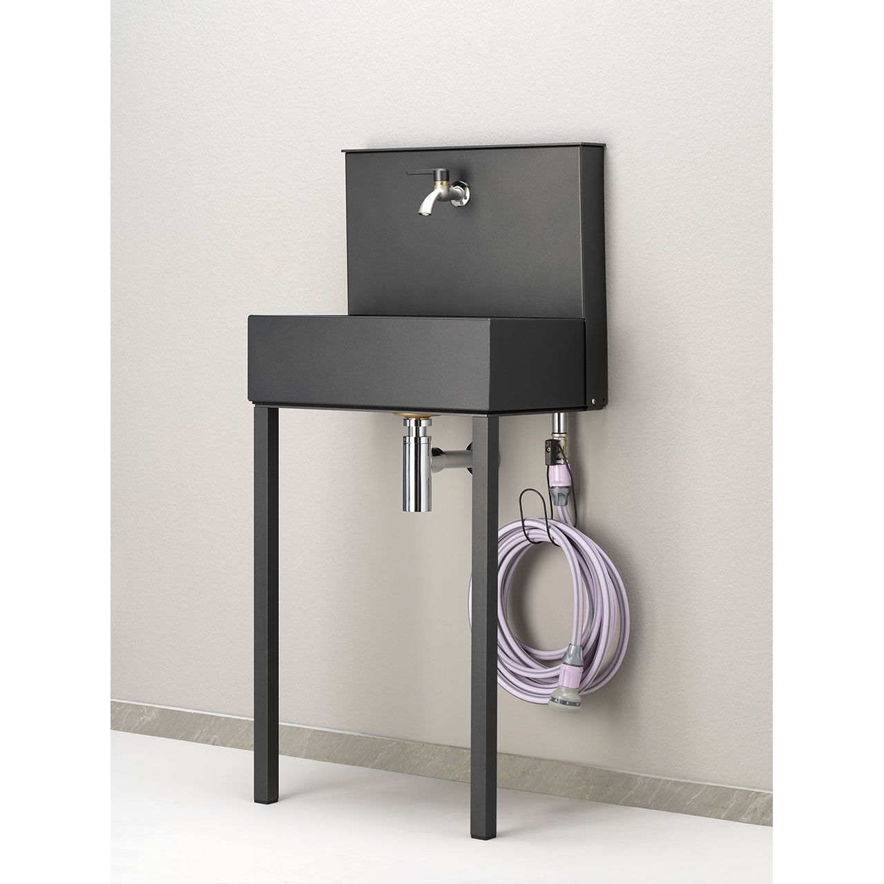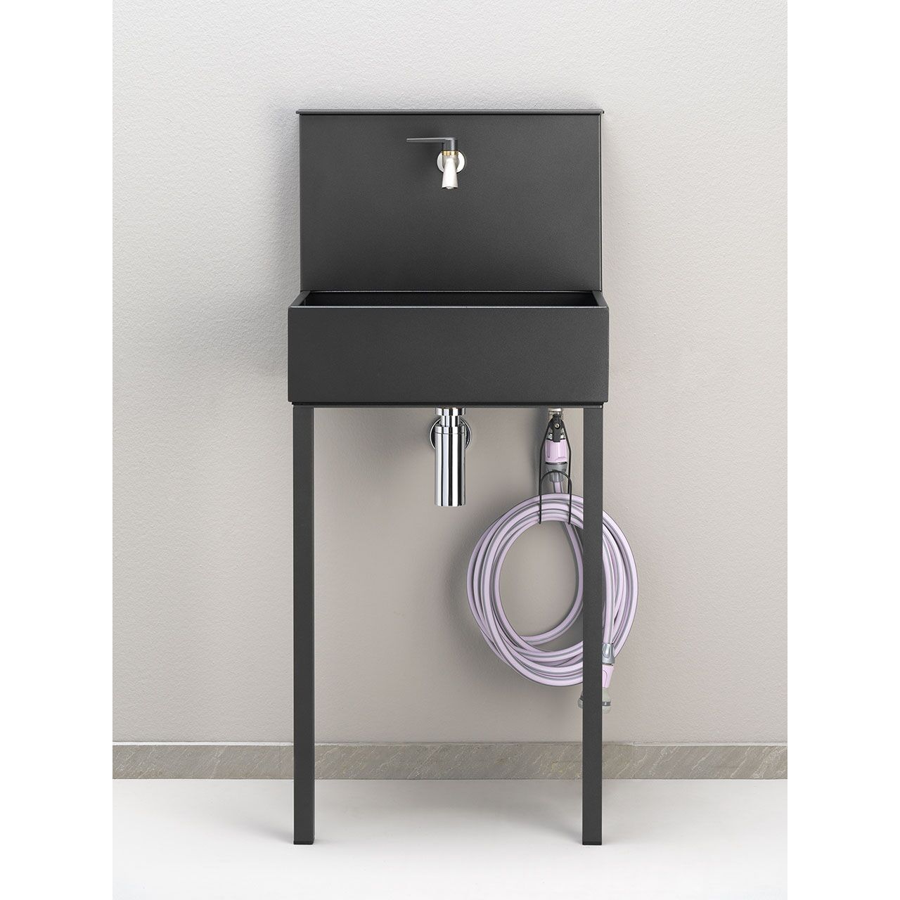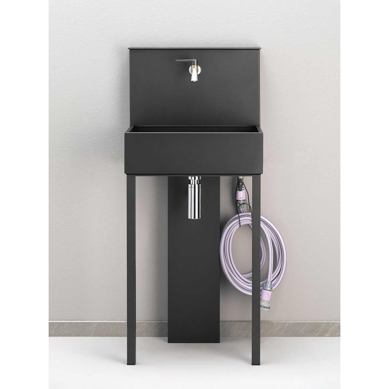 | Čiaupai | Du čiaupai: pagrindinis čiaupas yra šalčiui atsparus chromuotas žalvarinis rutulinis ventilis su atitinkama rankena. Antrinis čiaupas yra chromuotas žalvarinis rutulinis ventilis su greito atlaisvinimo gumine išleidimo anga. Pridedamas chromuotas sifonas. |
