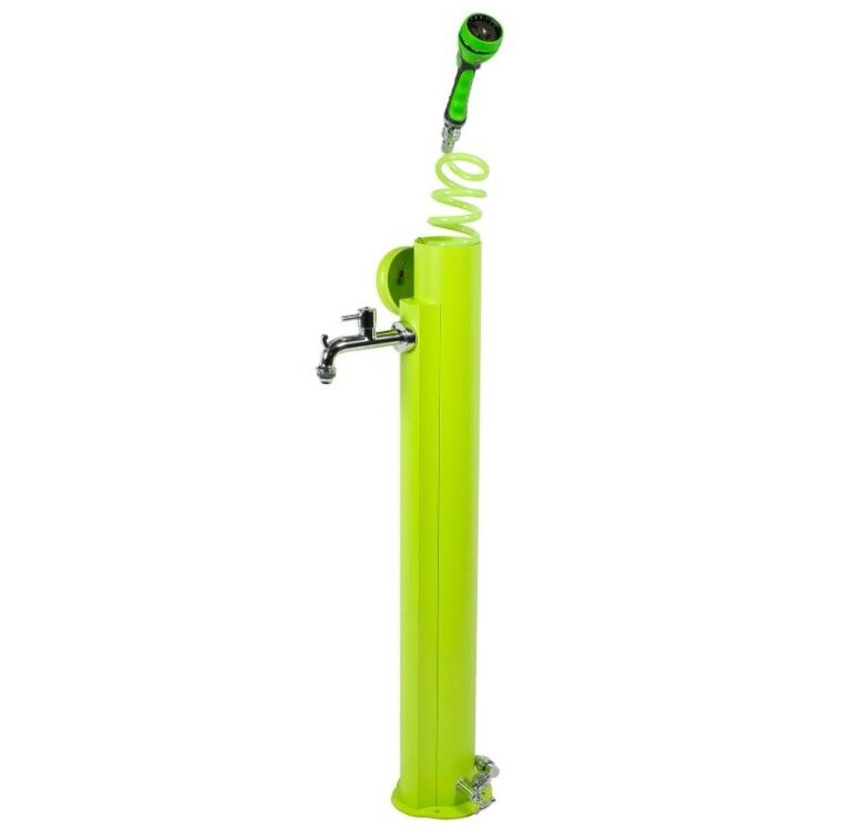 | Čiaupai | Chromuotas žalvarinis dvigubas čiaupas. Pagrindinis su aeratoriumi, antras su greito pajungimo žarnai antgaliu. Vidinė spiralinė 10 m. ilgio žarna su laistymo antgaliu turinčiu 7 tipų purkštukus. |